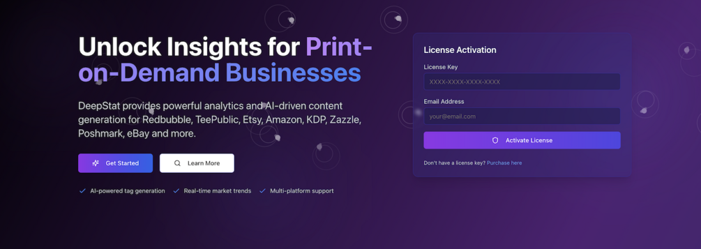 DeepStat - Print On Demand, Amazon, Etsy Stats Unleashed!aqifkaya$29.99 a month29.99usdAll Features Included!Access To All ToolsRedbubbleTeepublicEtsyZazzleKDPMerch By AmazonEbayPoshmark129.99usdAdd to cartAdd to wishlist New wishlistShareShare on XShare on Facebook Copy linkCopy product URLNo refunds allowed